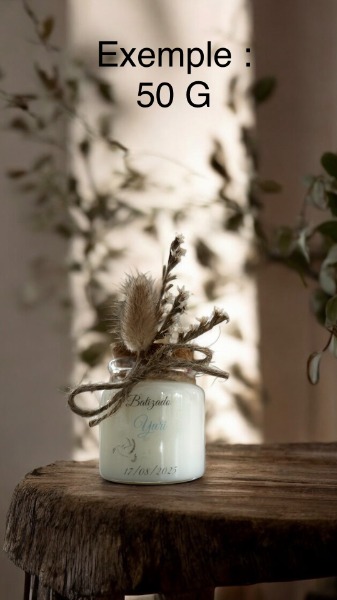 Découvrez notre bougie "événement", fabriquée à partir de cire végétale de Colza, et au parfum de Grasse.